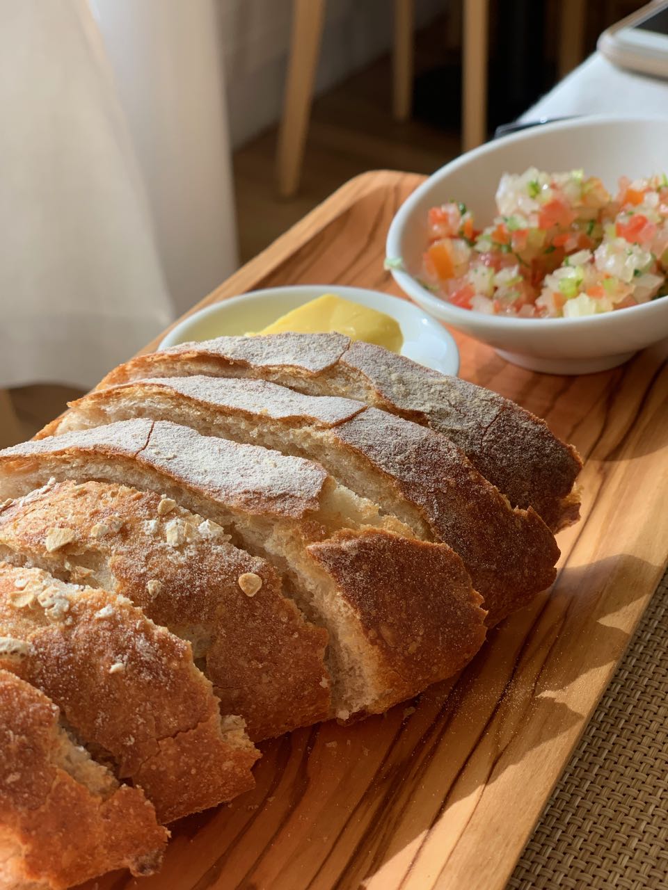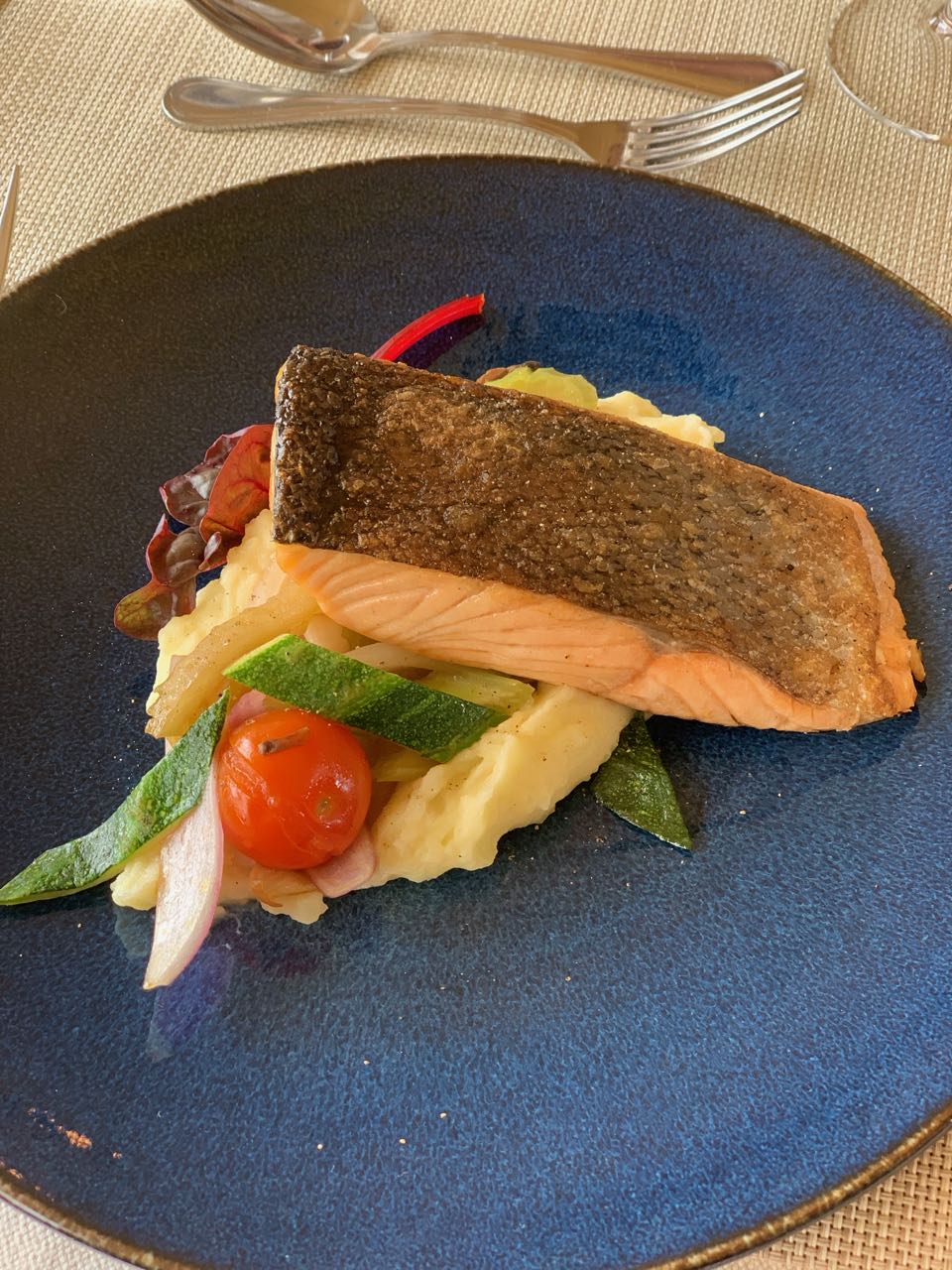A cozinha é saborosa e descomplicada, e os menus de almoço e jantar oferecem entrada, prato principal e sobremesa. O foco são os ingredientes frescos, como frutos do mar e carnes de caça, pães e sobremesas feitos na casa e algumas especialidades locais.
