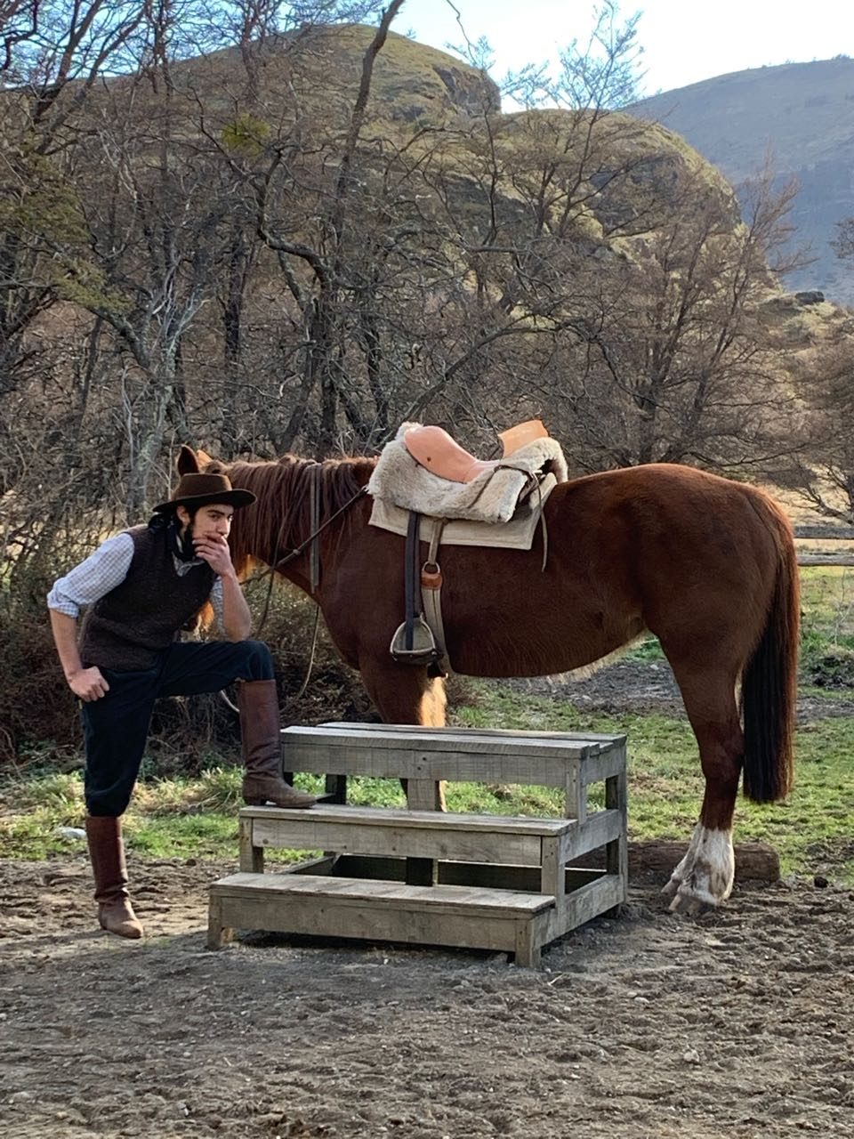 O grupo de hóspedes, mais um guia e um gaúcho sai dos estábulos e sobe por uma florestas a caminho do mirante da Laguna Negra. É uma cavalgada fácil, de 4km e 1h e 1/2 de duração, e perfeita para os primeiros dias no Explora Patagônia. A paisagem até lá é belíssima e cheia de aves locais, arbustos e árvores. Adorei!