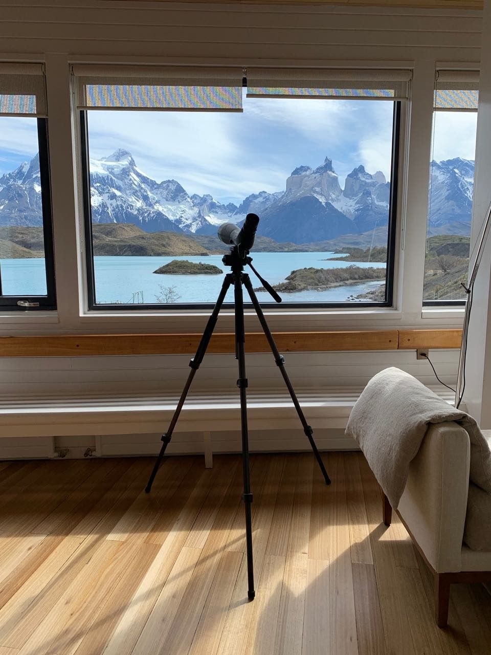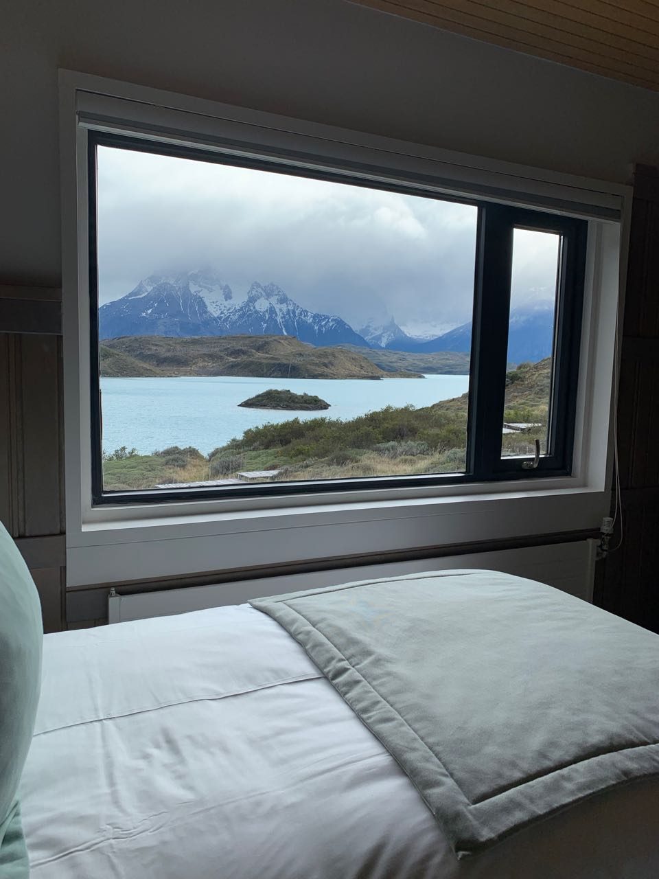 Nosso quarto era um Cordillera Paine Room e tinha uma vista capotante. Acordávamos maravilhadas com tanta beleza, e íamos dormir exaustas (das expedições do dia), mas com uma felicidade indescritível. Abaixo a vista do nosso quarto.