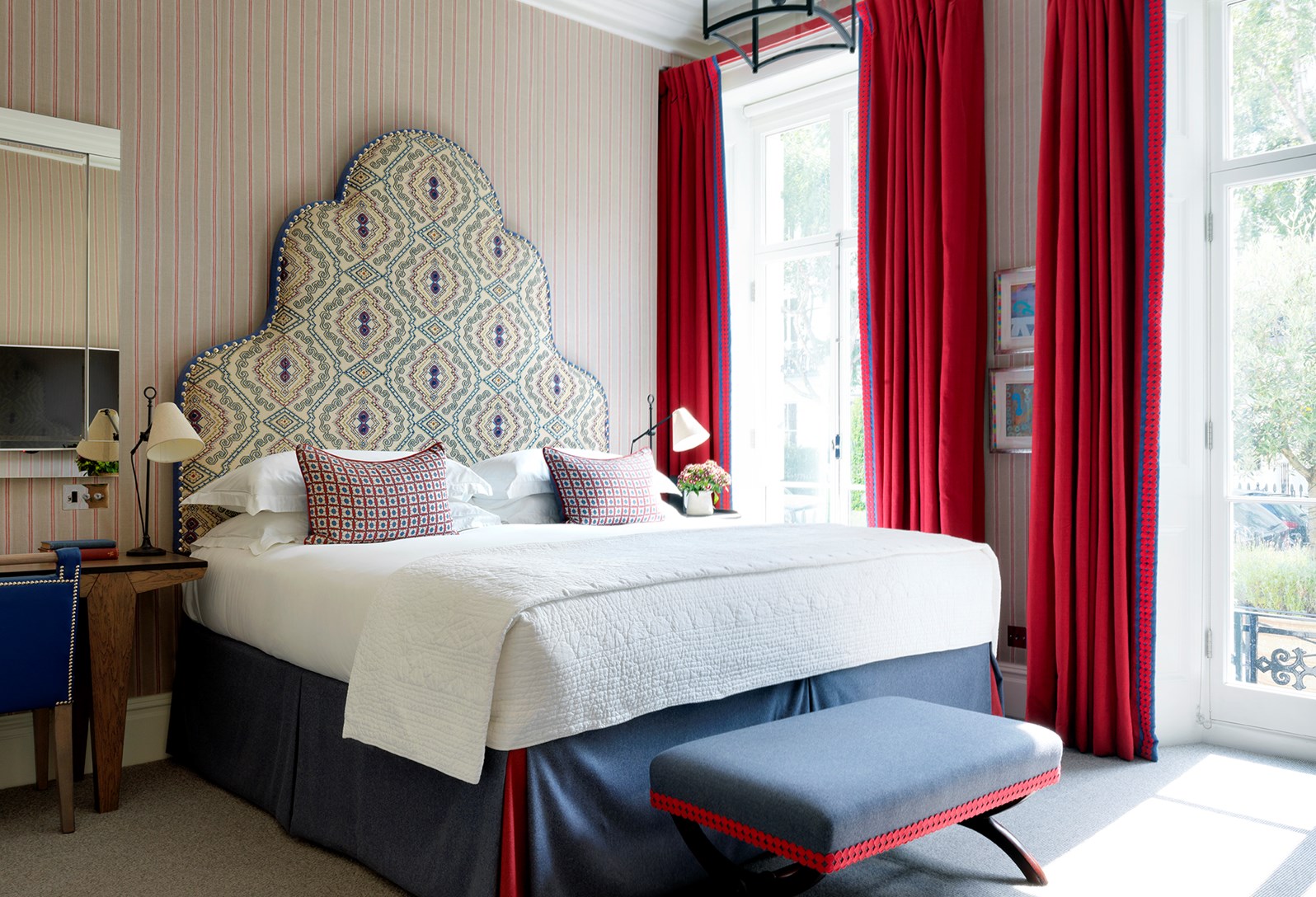O hotel tem 41 quartos e cada um tem uma decoração diferente do outro. As camas tem as cabeceiras altas e são forradas com belos tecidos. Alguns quartos têm vista para a rua Sumner Place, enquanto outros têm vista para o jardim. Dois deles tem varandas. Recomendo muito reservar os quartos com vista para o jardim, já que os quartos de frente para a rua podem ser um pouco barulhentos.