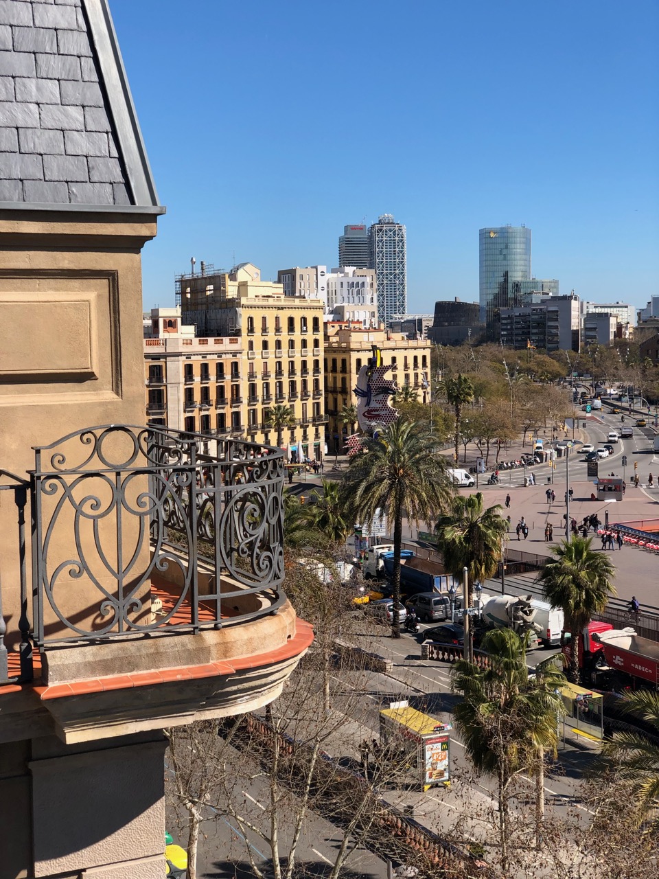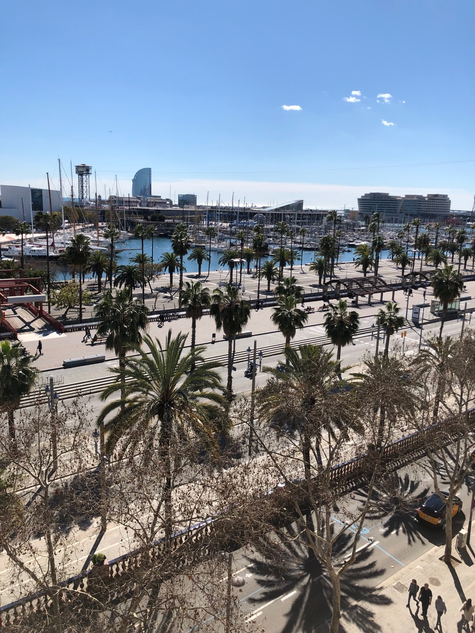 Pesquisei muito antes de me decidir por ele, e saí de lá muito feliz com minha escolha. A começar pela localização. O hotel fica de frente para o Passeig de Colom, com vista para o Port Vell (foto acima) e na borda do Bairro Gótico. Ou seja, é perto de tudo, mas super alegre e ensolarado, sem a escuridão que os hotéis localizados dentro do Bairro Gótico tem.