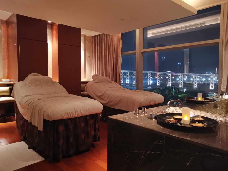 A nossa sala de tratamento, para casais, tinha uma vista para a Macau Tower linda de morrer.