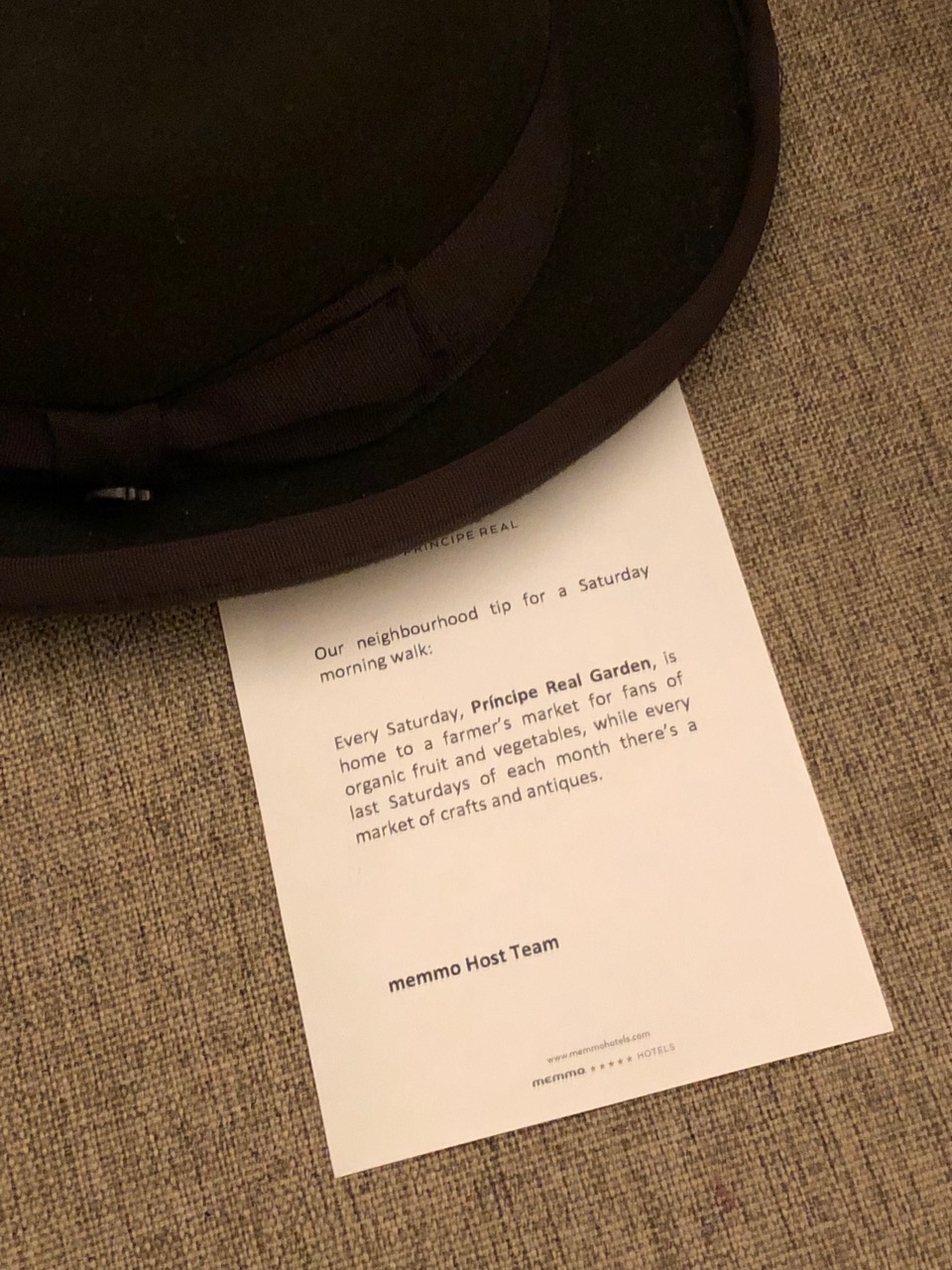 Adoro também que o Memmo Príncipe Real Hotel Lisboa oferece aos hóspedes pequenos mimos, como o kit para preparar o próprio gin tônica dentro do quarto. Um chapéu em cima da poltrona convida o hóspede a fazer tour à pé pelos pontos mais interessantes do bairro. Me encantou também o fato de haver uma lareira na varanda do quarto, e algumas mantas para os dias mais frios. Pequenos detalhes como esses são o que fazem o hóspede se lembrar do carinho com o qual foi recebido num estabelecimento. Junta-se a isso uma equipe carinhosa (como foram conosco) e o hotel acaba se tornando um favorito.