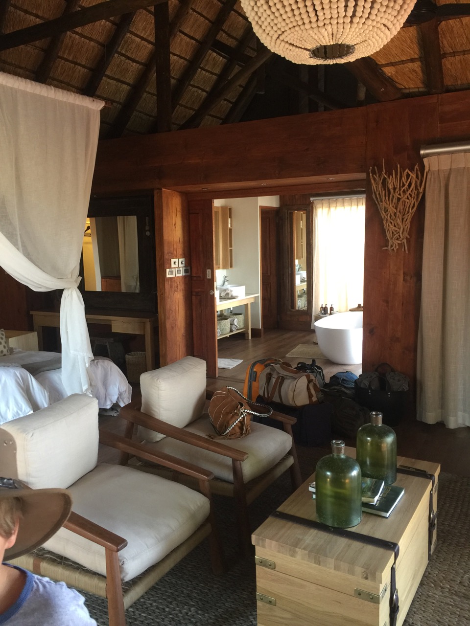 Nosso lodge, que faz parte do grupo que adoro, Sanctuary Retreats, é lindo de morrer e conta com tudo aquilo que amamos. Um spa, uma bela varanda para os sundowners, piscina, boma, wi-fi e bar. Tem doze belos quartos (bush pavillions) separados com ar-condicionado, banheira, mini-bar, wi-fi e cofre. Na área externa tem outdoor shower, uma piscina e uma varanda maravilhosa. O serviço do Chief’s Camp é impecável e a equipe se mostrou sempre profissional e muito gentil. As refeições eram servidas no restaurante principal, no bar ou na varanda e a culinária é muito saborosa.