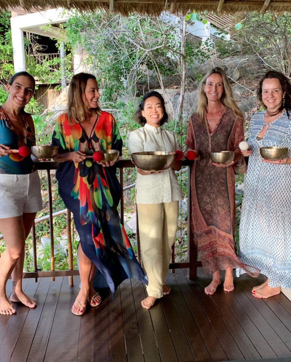 Nossa aula de meditação em movimento, e workshop de Singing Bowls Nepaleses foram as atividades mais bacanas que fizemos durante a viagem de Wellness na Tailândia.