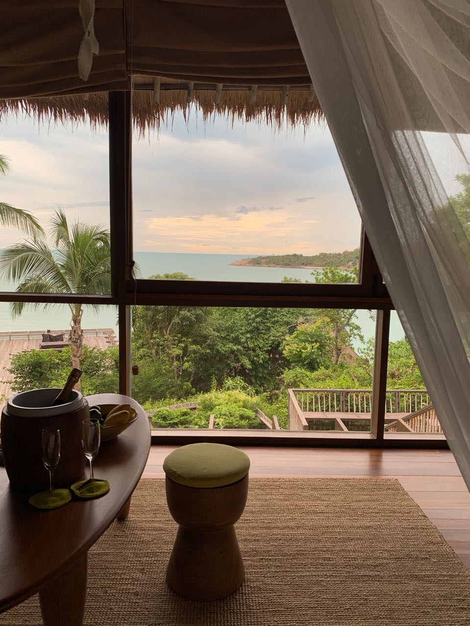 O Six Senses Samui fica localizado em uma península no Norte da ilha de Koh Samui, uma área com muito verde, praia (quase) privativa, e está a 6km de distância, ou 15 minutos de carro, do aeroporto de Samui.