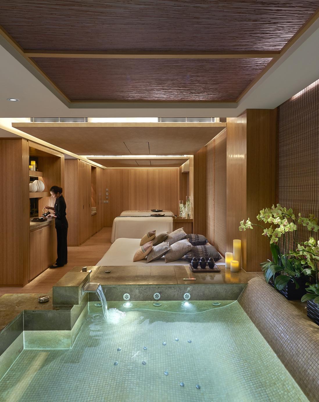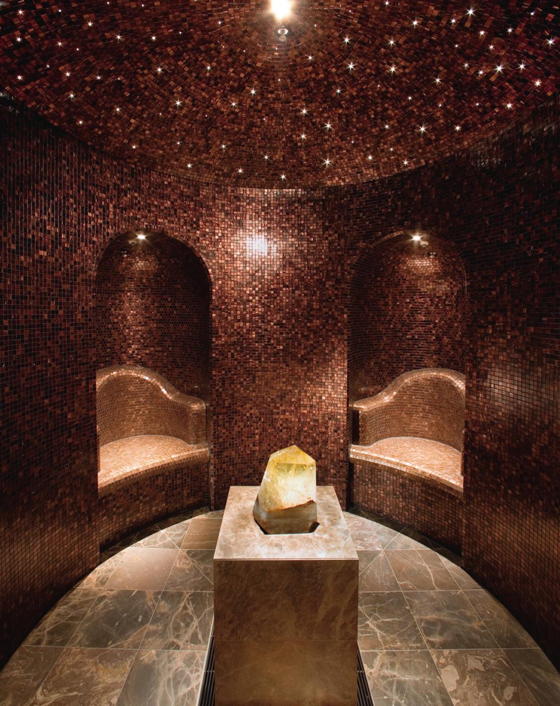 O impressionante spa do hotel é dividido em dois andares e conta com 15 quartos para tratamentos, incluindo um VIP para casais. O espaço abriga ainda um Hammam tradicional, um Rasul marroquino e lounges para relaxamento para homens e mulheres separados. Uma piscina, uma sauna à vapor de ametista, saunas secas, uma piscina, potentes chuveiros e uma fonte de gelo completam as atrações do fantástico spa.