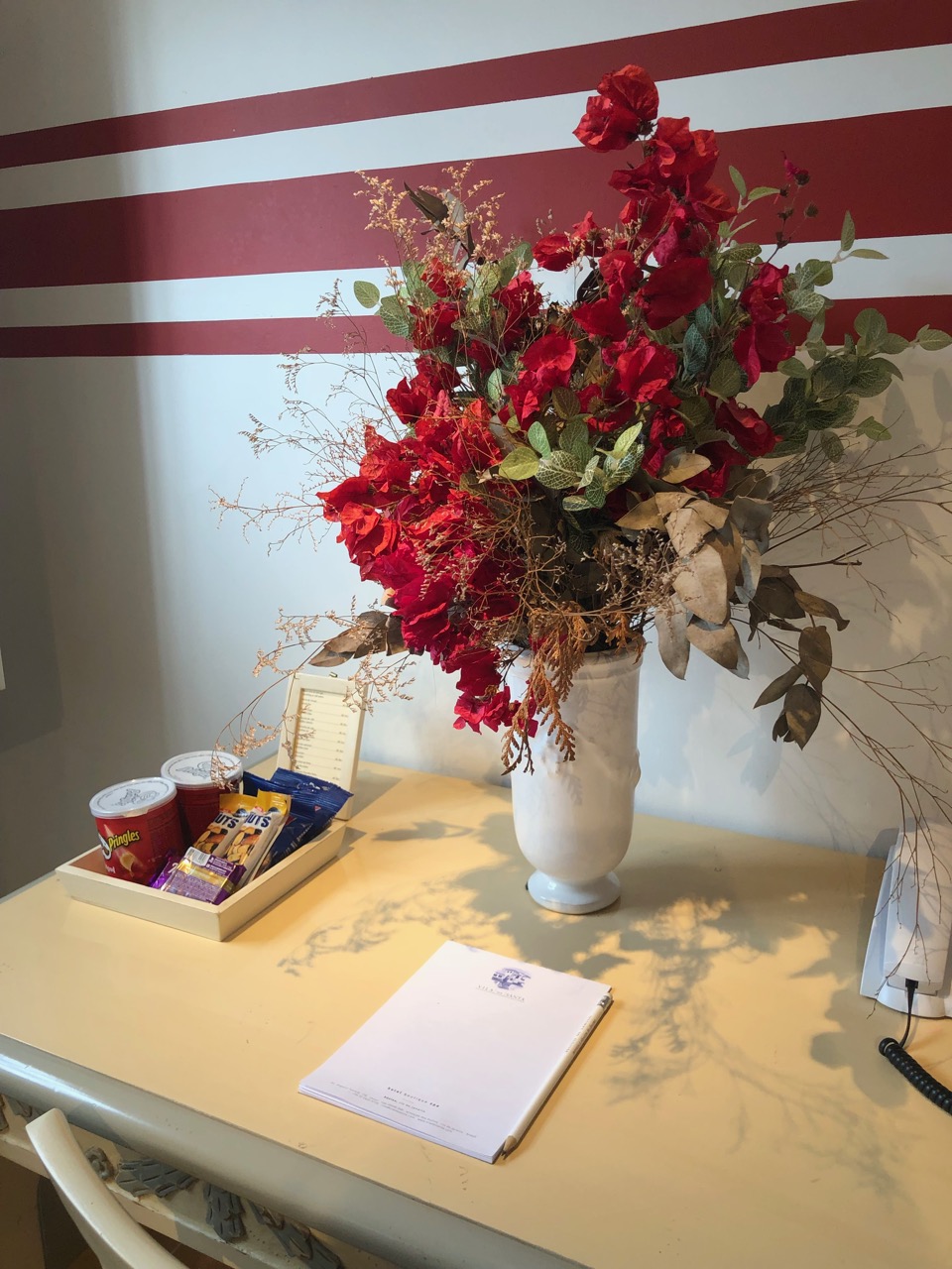 O hotel conta com 19 suítes, cada uma decorada de forma diferente da outra. Todas com os móveis lindos são da antiga Secrets de Famille. A nossa suíte era muito linda, repleta de detalhes carinhosos e românticos (fotos abaixo).